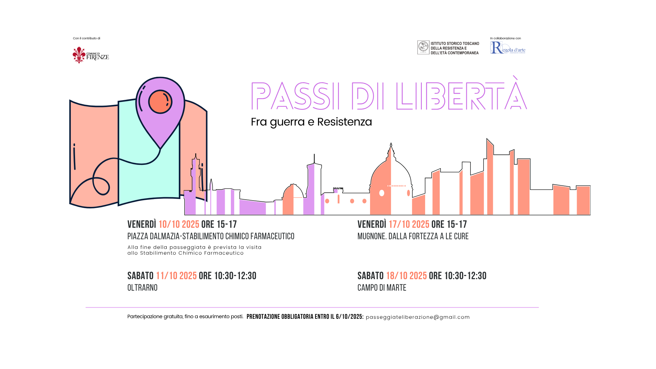 Sarà possibile iscriversi dal 1° settembre al 6 ottobre scrivendo a passeggiateliberazione@gmail.com. L’iscrizione è gratuita fino ad esaurimento posti.