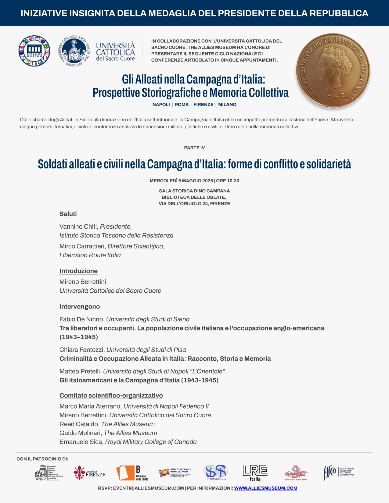 Mercoledì 6 maggio il presidente Vannino Chiti interverrà al convegno Soldati alleati e civili nella Campagna d’Italia: forme di conflitto e solidarietà, quarto appuntamento del più vasto ciclo Gli Alleati nella Camapagna d’Italia: prospettive storiografiche e memoria collettiva.